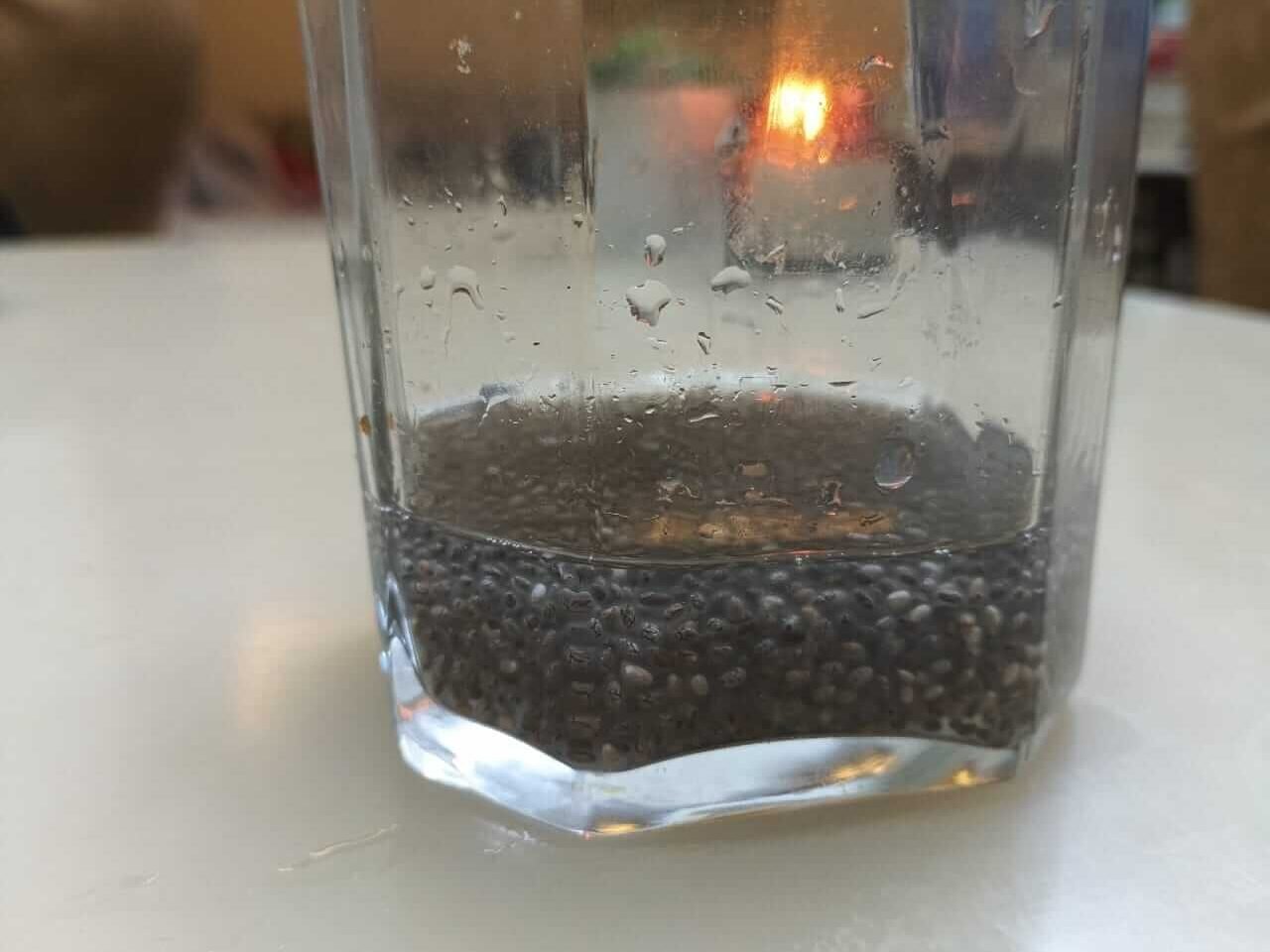 Versate i semi di chia in acqua tiepida, mescolate e lasciate riposare per almeno 20 minuti.